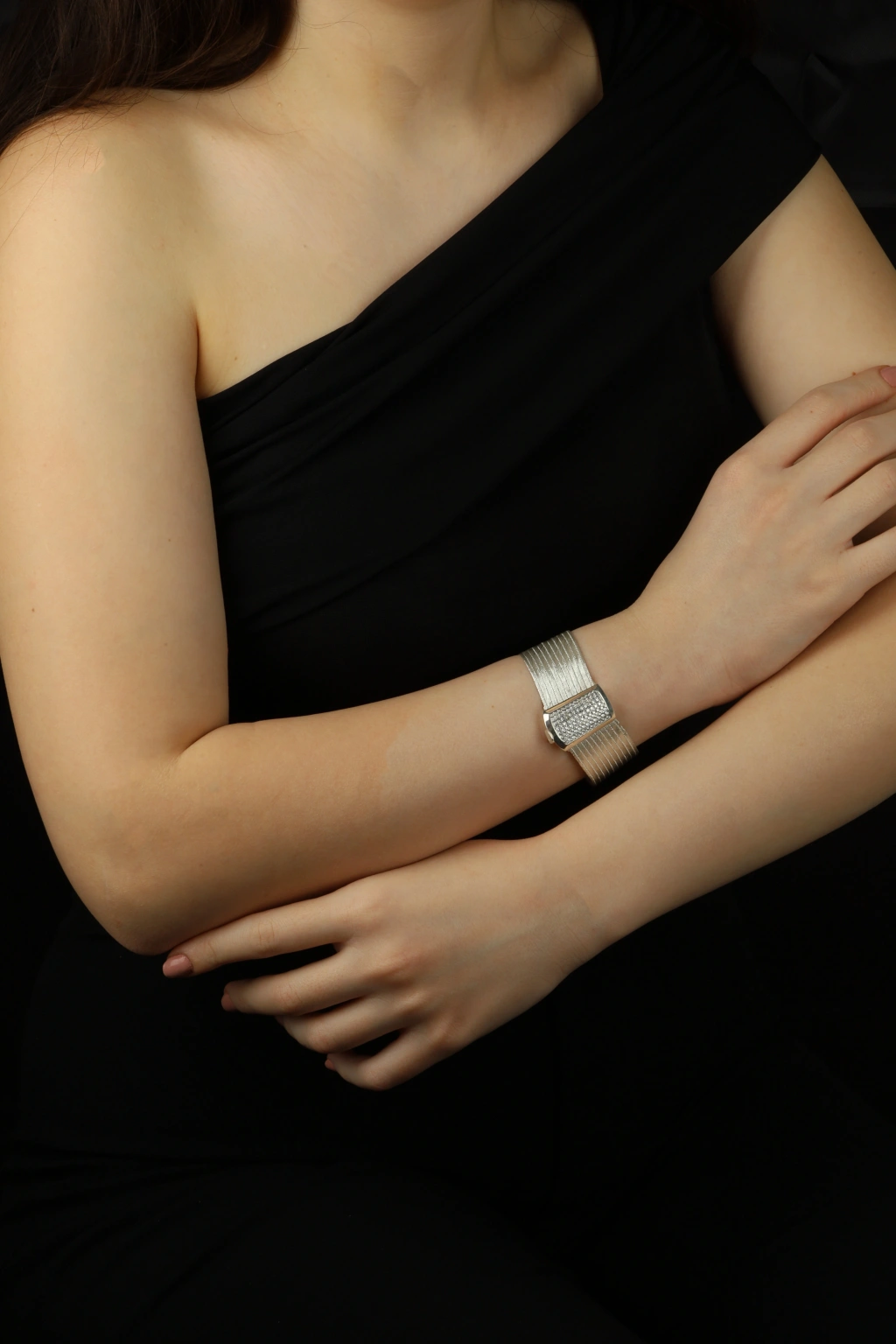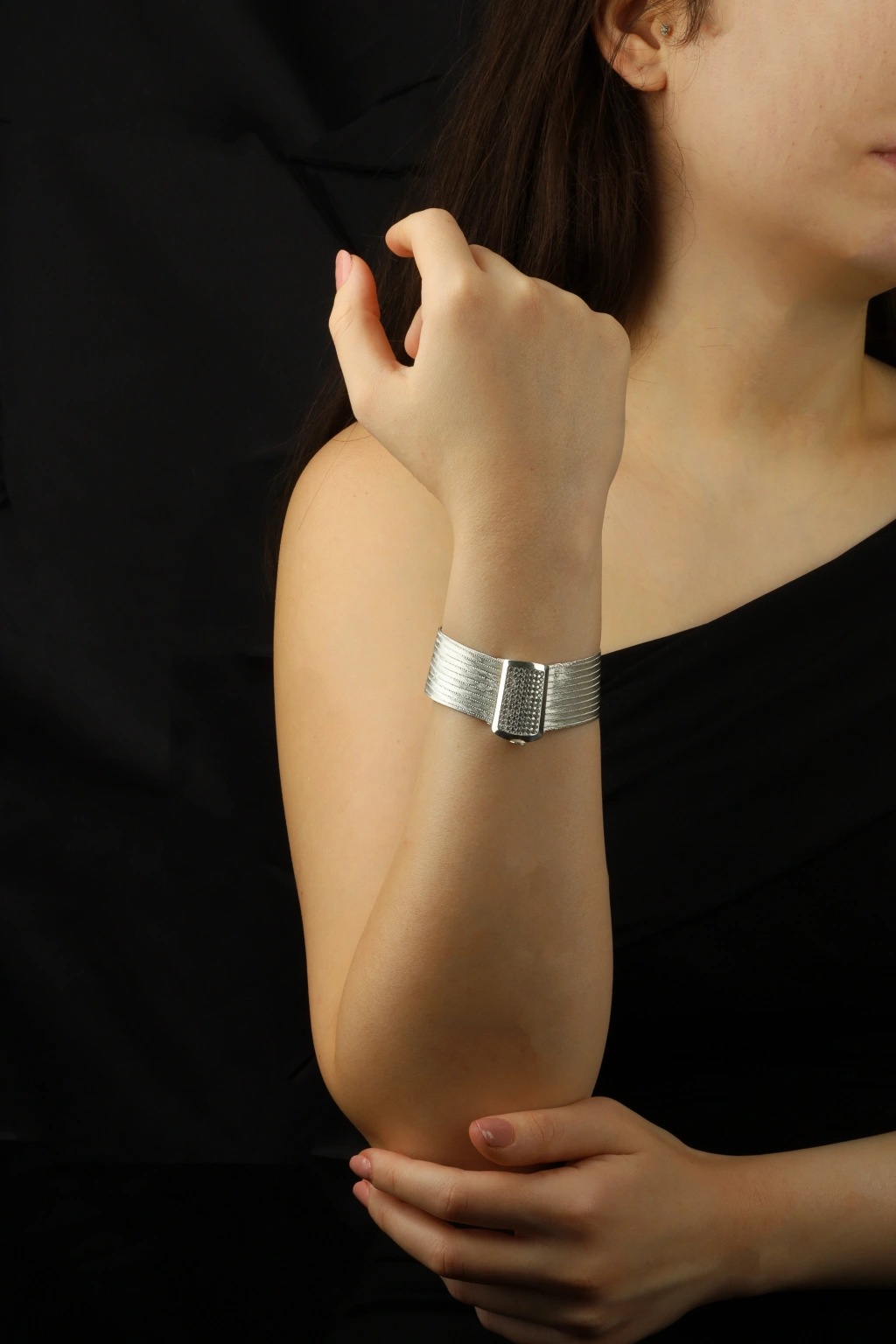 11 Sıra Taş Tokalı Trabzon Hasırı Gümüş Bilezik