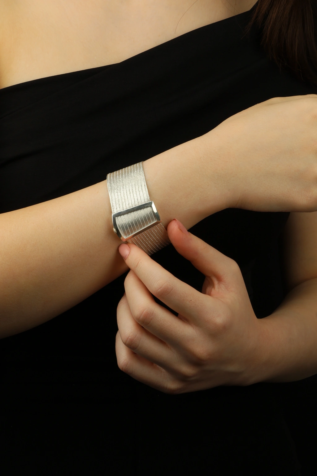 • Sade ve şık bir görünüm için 13 sıra klasik tokalı Trabzon hasırı gümüş bilezik!