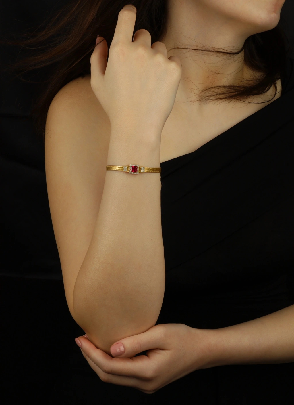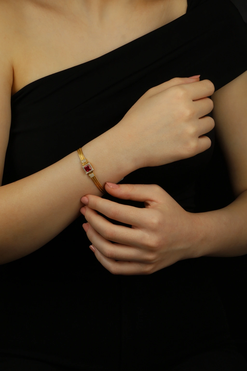 3 Sıra Kırmızı Baget Taşlı Trabzon Hasırı Bilezik