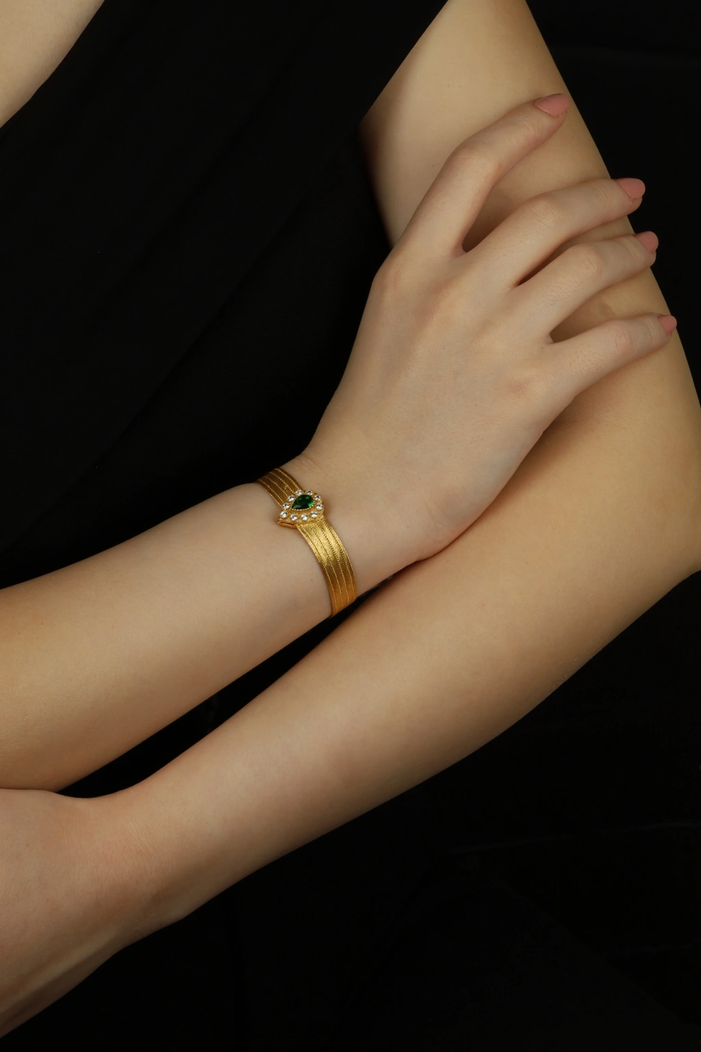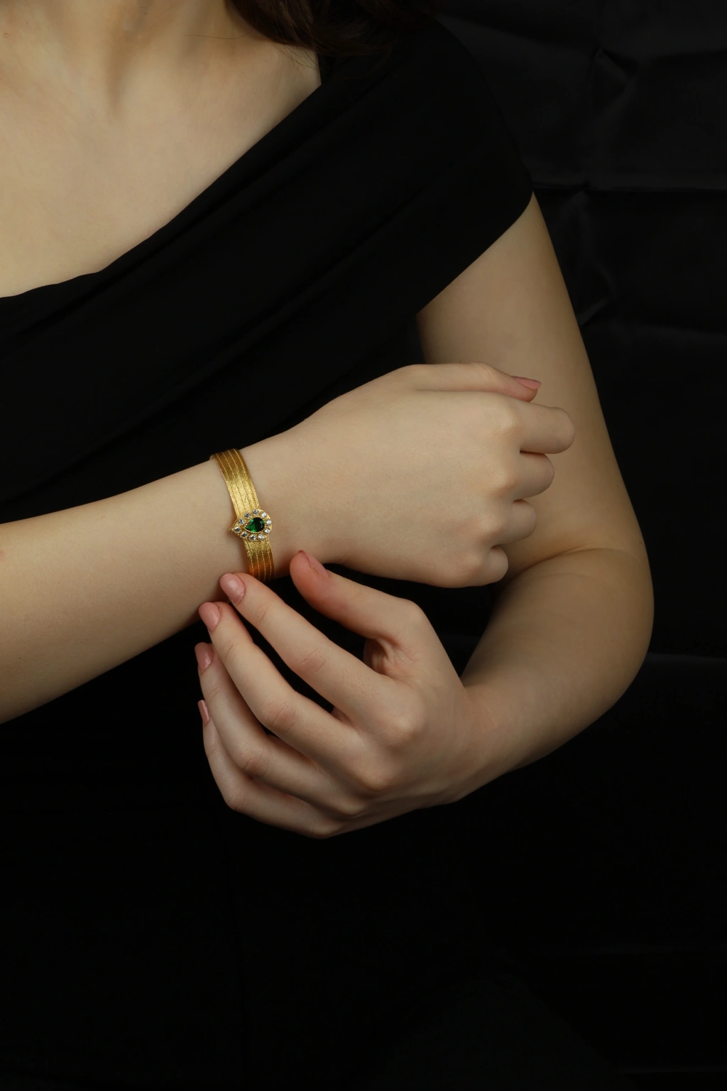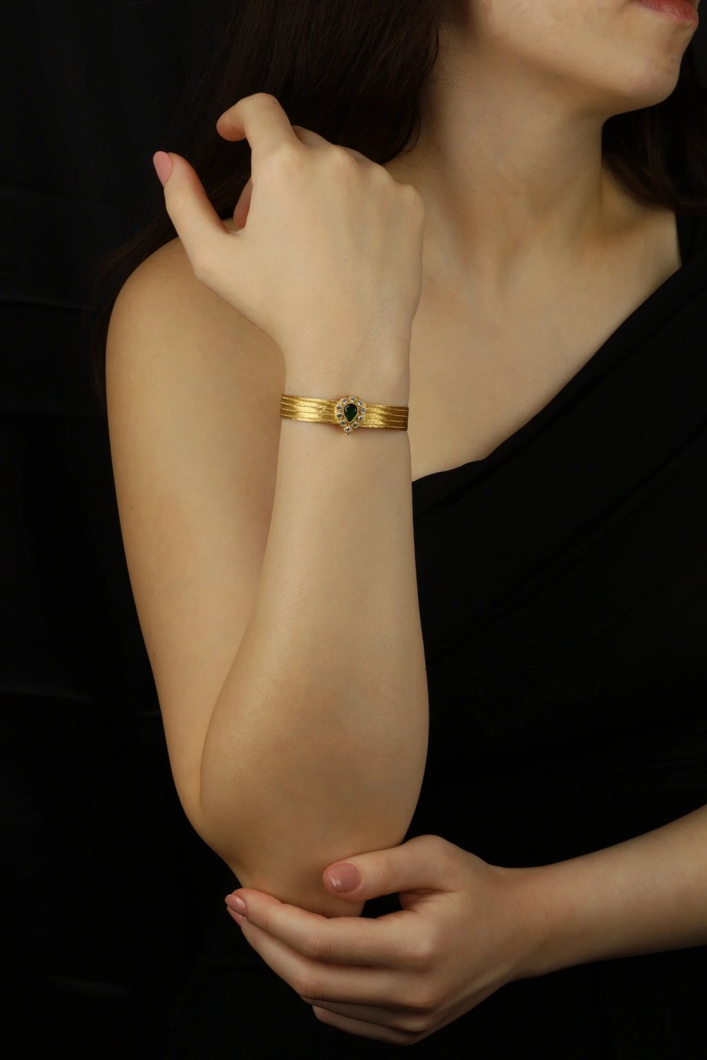 • 5 Sıra Yeşil Taşlı Trabzon Hasırı Gümüş Bilezik, şıklığı ve zarafeti bir arada sunan özel bir aksesuar.
