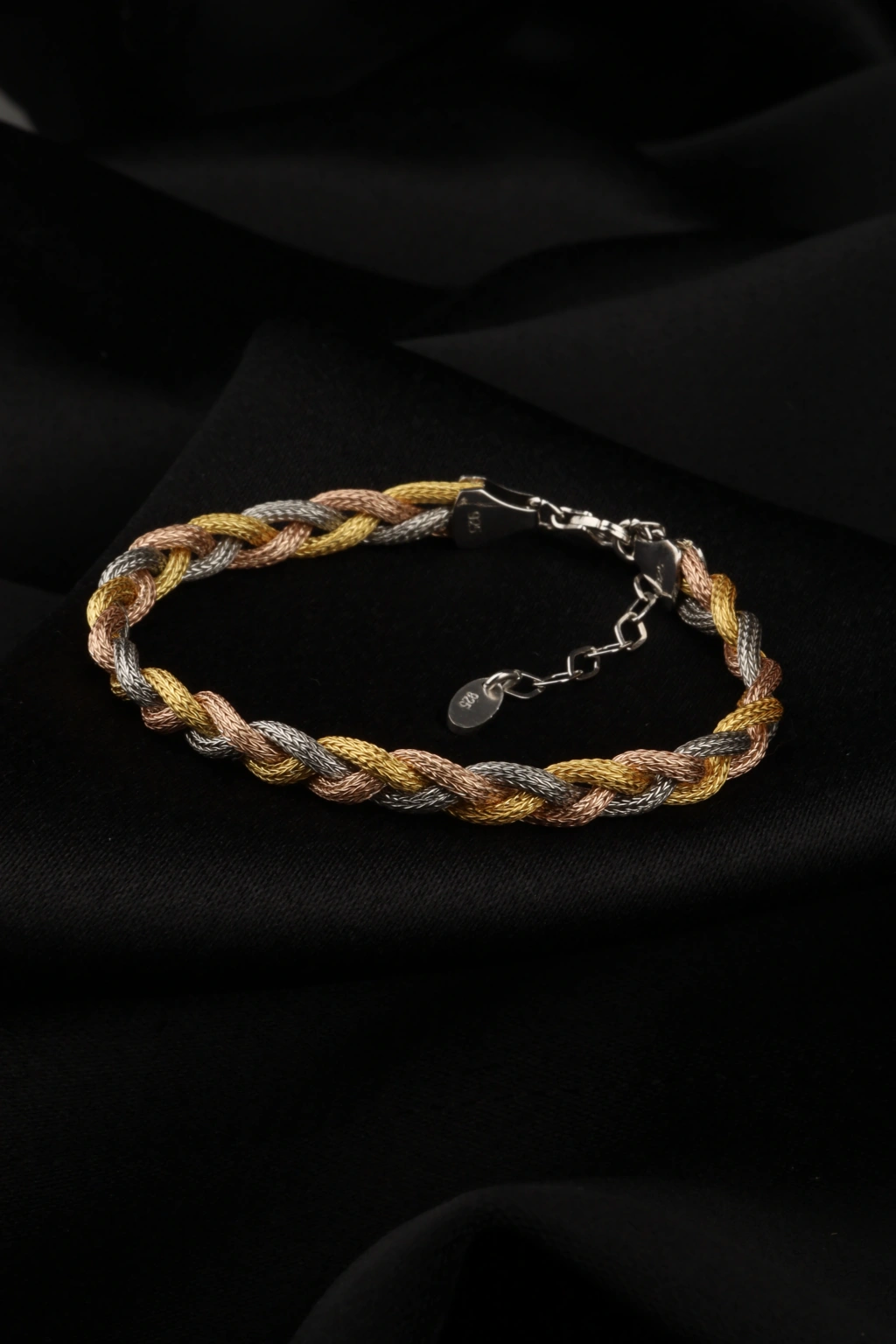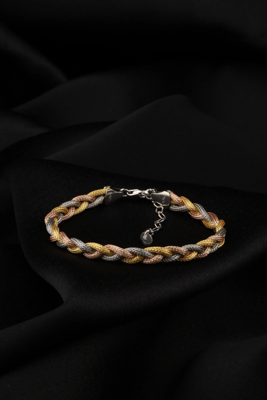 925 ayar gümüş bileklik, geleneksel İtalyan hasır işçiliğini modern bir tasarımla buluşturuyor. Telin özenle örülerek oluşturduğu bu bileklik, bilekte ipeksi ve esnek bir his bırakırken, klasik bir zarafet sunar.