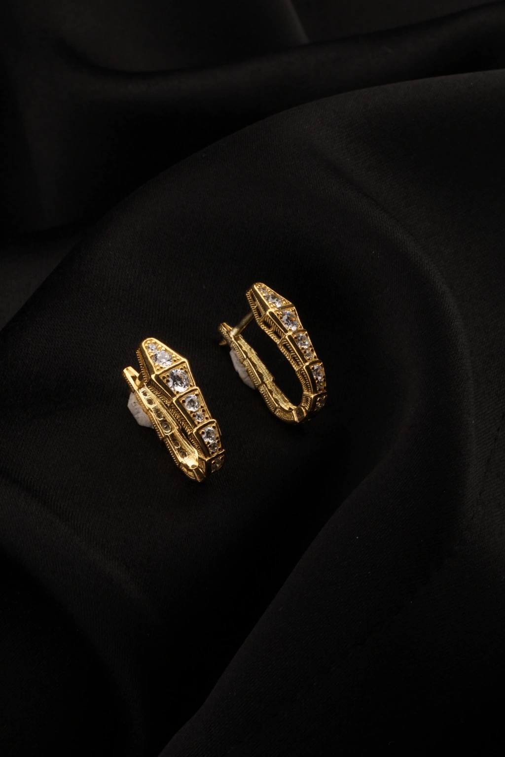 Bu özel tasarım 925 ayar gümüş küpe ile tarzınıza sofistike ve göz alıcı bir dokunuş katın. Küpeler, günümüzün en popüler trendlerinden olan yılan (snake) figüründen ilham alınarak tasarlanmıştır ve güçlü bir duruş sergiler.