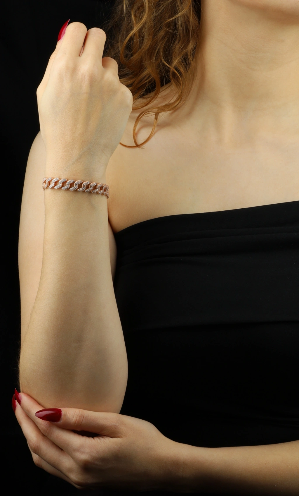 925 Ayar Rose Beyaz Taşlı Gurmet Bileklik