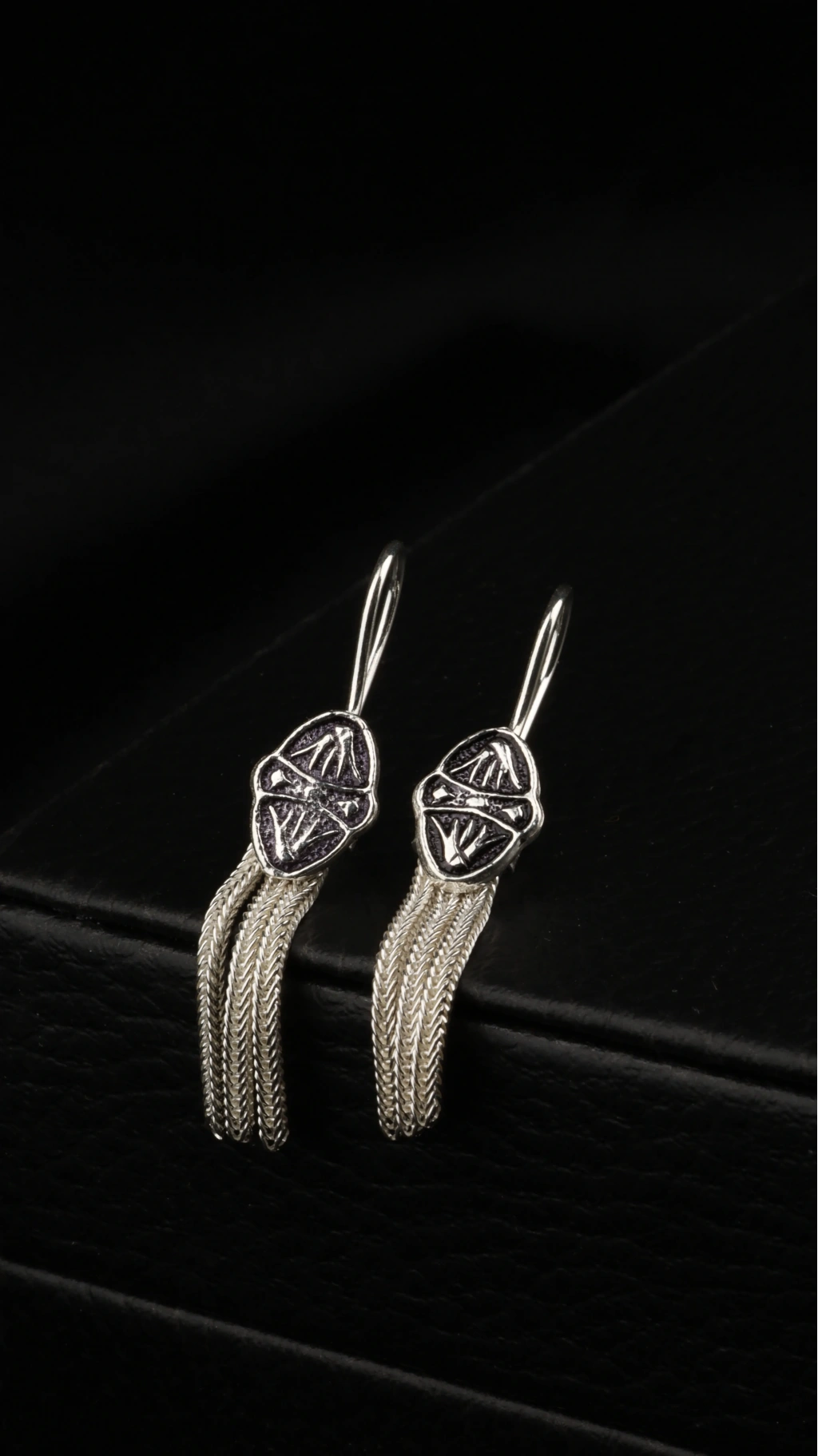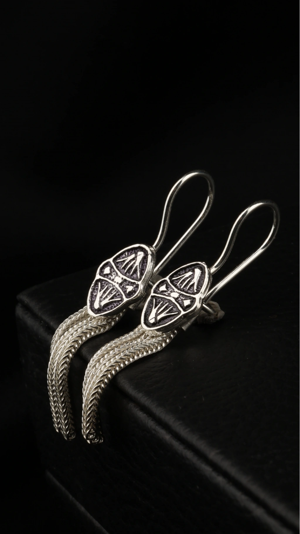 925 Ayar Rüzgar Gülü Motifli Mardin Hasırı Küpe