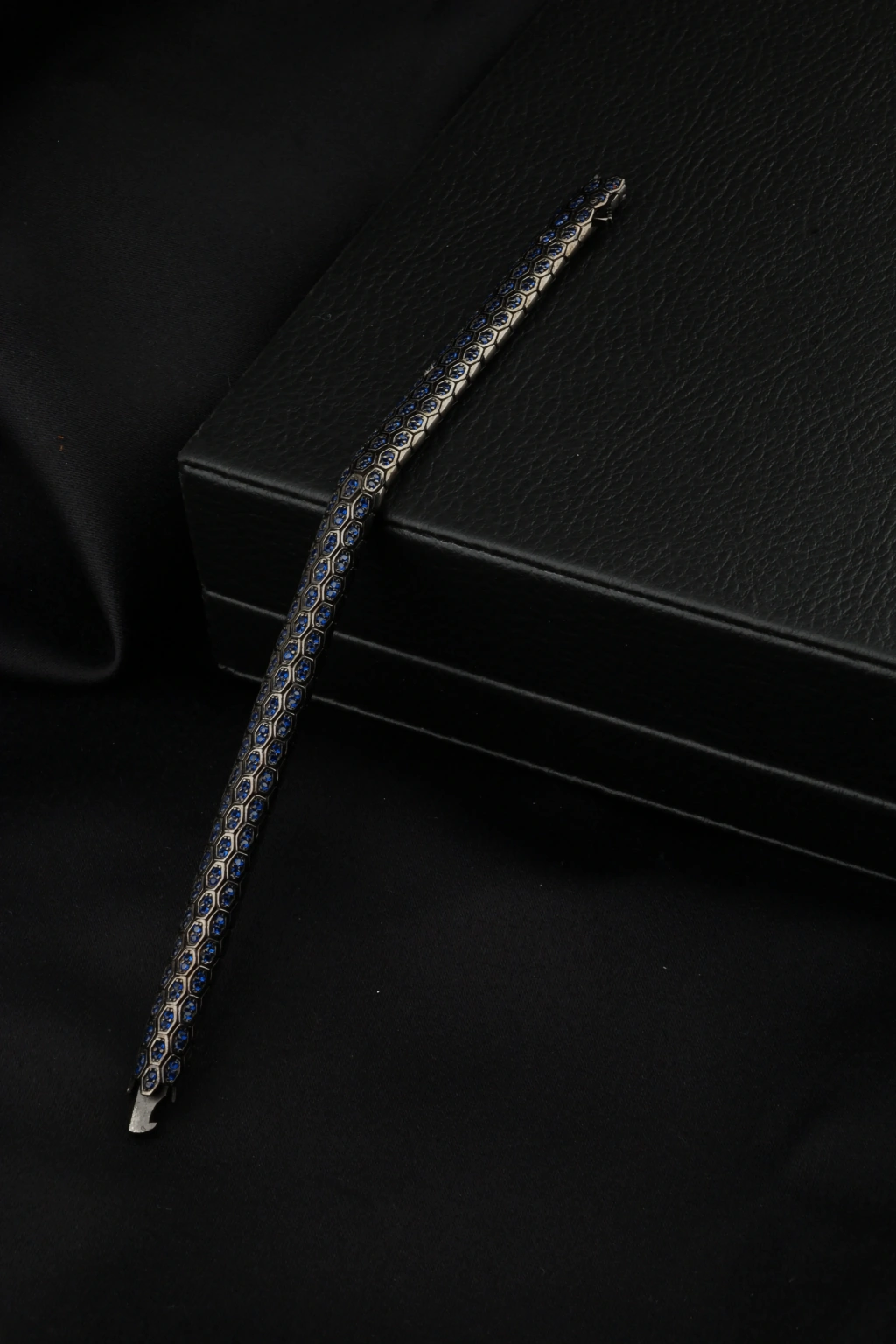 925 Ayar Safir Siyah Rodaj Snake Vip Gümüş Bileklik