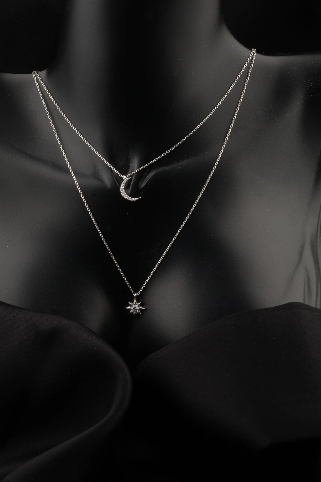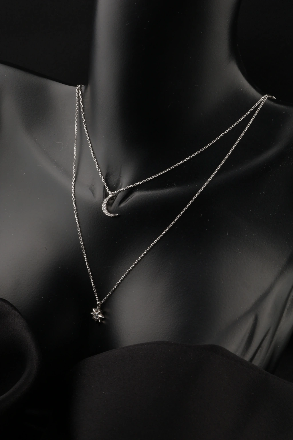 Ay ve Kutup Yıldızı Katmanlı 925 Ayar Gümüş Kolye