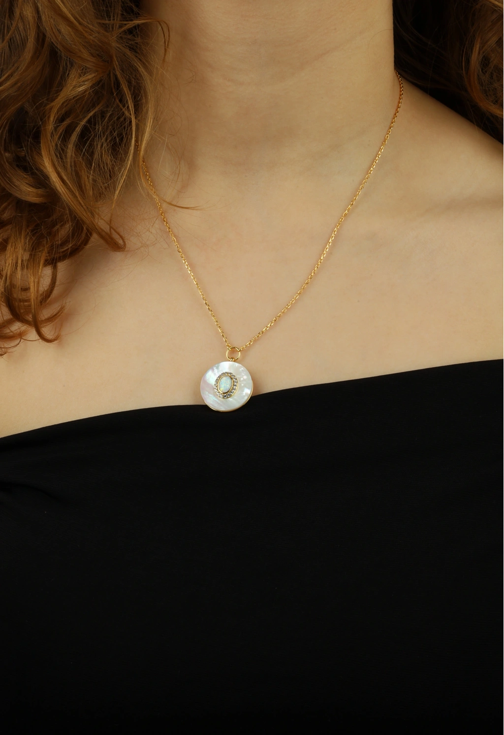 Doğal Taş Kombinasyonu: Küpenin merkezinde, gökkuşağı yansımalarıyla büyüleyen doğal sedef plaka yer alır. Sedefin ortasında ise ışıltıyı tamamlayan zarif bir opal taş ve çevresinde parlak zirkon detaylar bulunmaktadır.