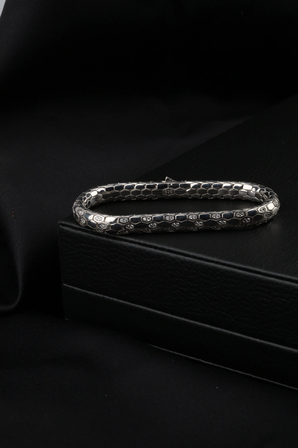 Zirkon Taşlı 925 ayar Snake Vip Gümüş Bileklik